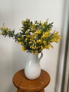 ふわふわに咲いたミモザがたっぷり入っていて、ボリュームも想像以上。鮮やかな黄色がとても綺麗。 ふたつの花器に生花を活け、残りをドライフラワーにしました。家のあちこちに春が来た感じ。 大満足です。
