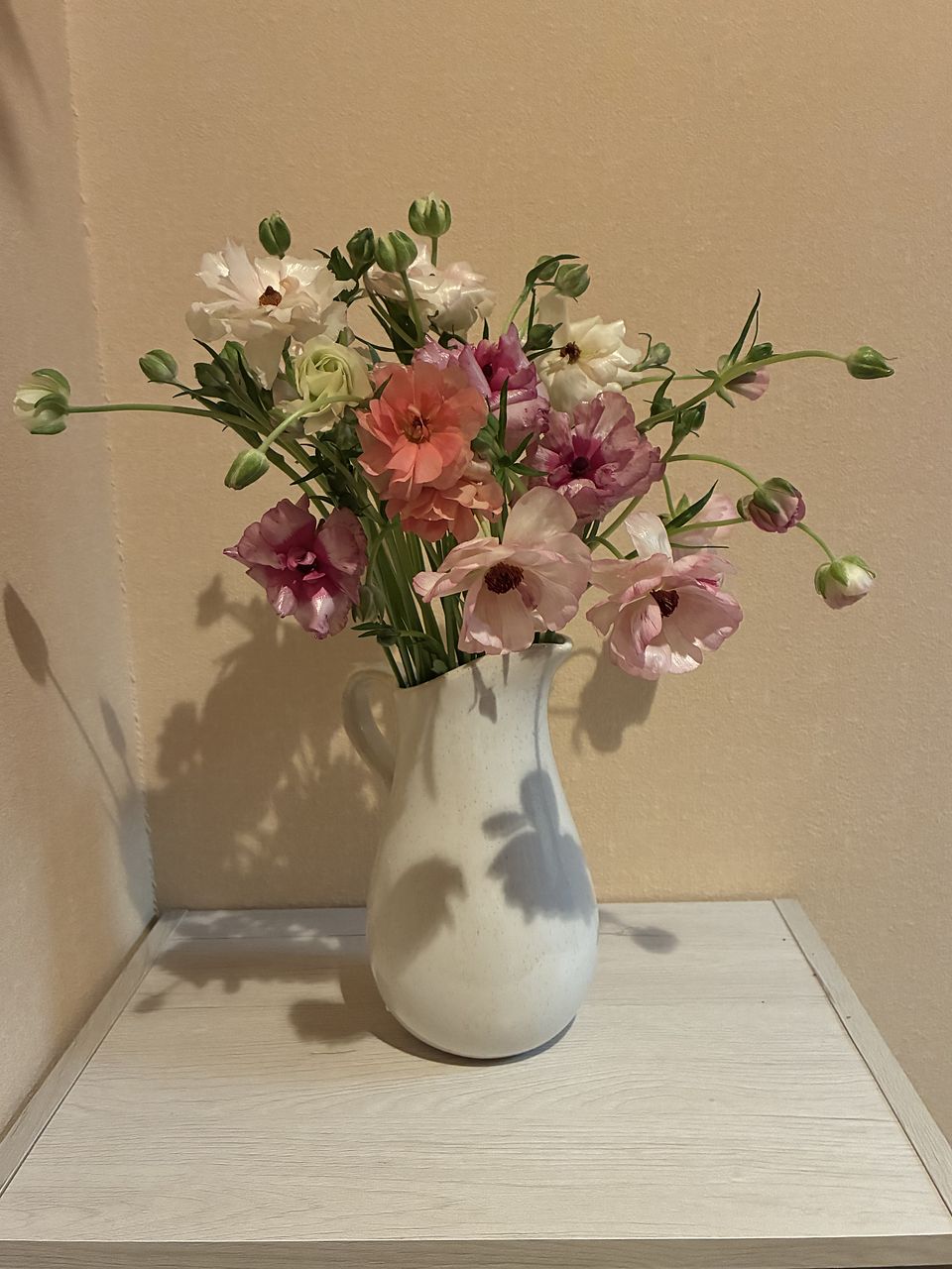 届いた当初から結構咲いてる印象だったので、枯れるのが早いかなとか思っていたが、たくさんつぼみもついてたので長く持ったし春らしくボリュームもあってかわいかった