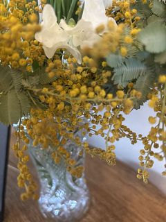 大好きなミモザですが、初めて購入しました。とても可愛くて💕その他のお花とのバランスもとっても素敵でした。玄関に飾っていますが、とても良い香りがしています。 ただ、一本折れてしまったお花があったのは残念でした。それ以外は満足です😊