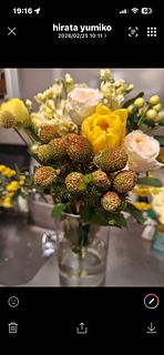 ミモザが沢山入って、春らしいとっても可愛いブーケでした💐 チューリップが終わりかけか、首が曲がってしまって生けれませんでした🥺 でも、大変満足です🥰