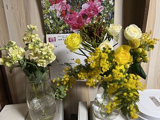 新鮮な可愛い黄色いお花が届き🌼 お部屋が華やいでいます。 ミモザがもう少し欲しかったかなぁと思いますが,心癒され満足です。