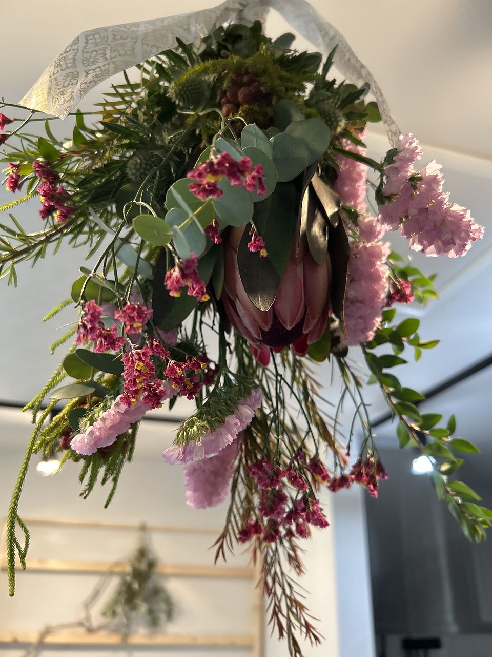 立派なプロテアで色合いも可愛い🩷 2〜3日飾ってスワッグにします。 今回は花瓶も一緒に頼んで良かったです。