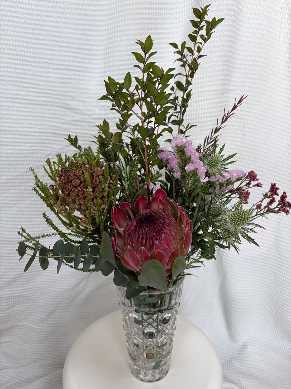 少し分けて飾りました マムとソリダコは家にあったもの 圧巻の存在感のプロテア ボリュミーで豪華! お花屋さんでは見かけない種類がたくさんありとても満足してます