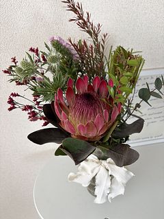 華やかなプロテア狙いで発売を待ってました。 ボリュームもあり、色合いもピンク系で春らしく素敵でした。しばらく花瓶に飾ってから、スワッグにしたいと思います。 また、違う種類のプロテアが発売されたら購入したいです。