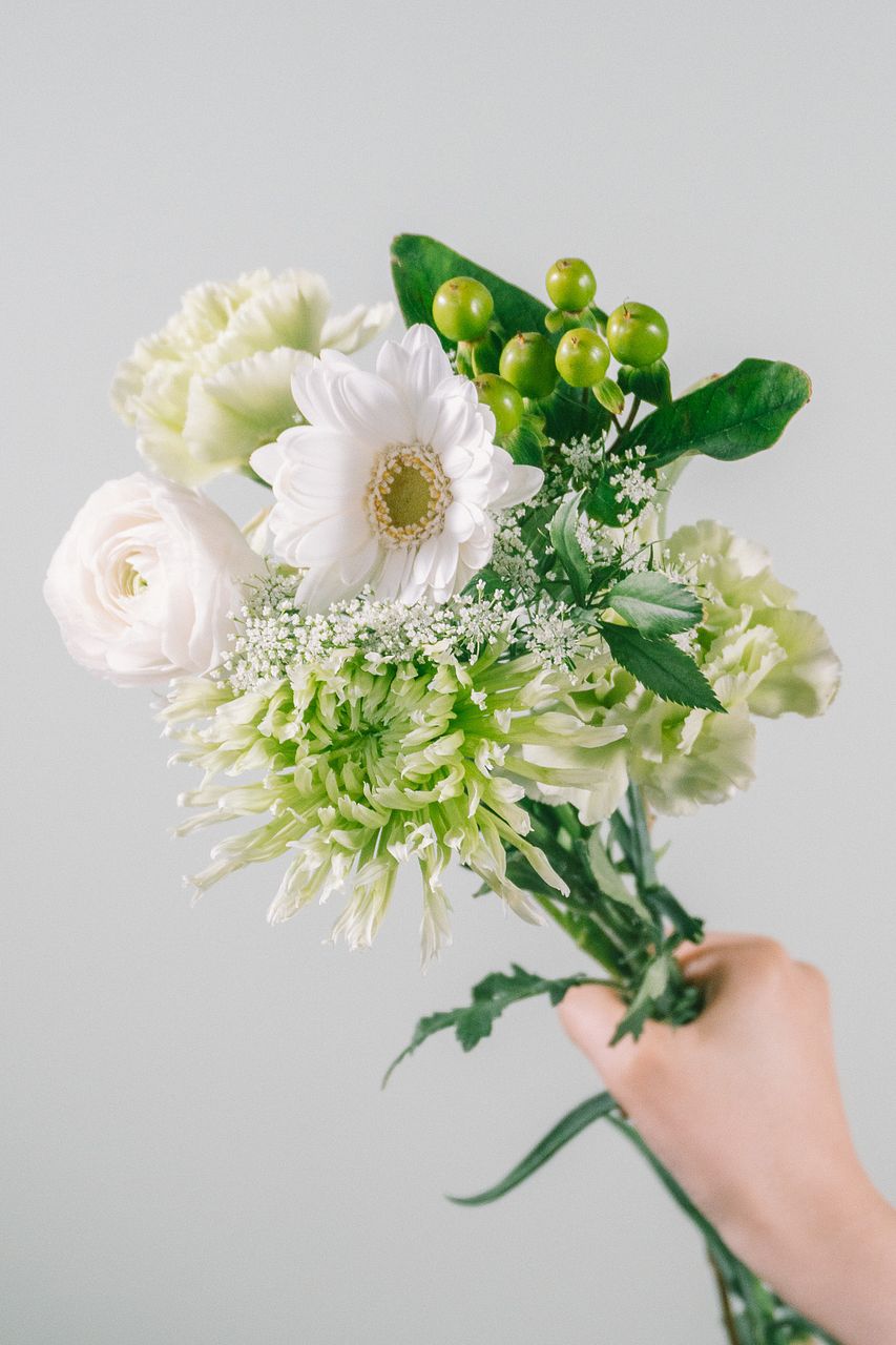 春らしい爽やかなホワイトとグリーンのお花をチョイスしました🌿