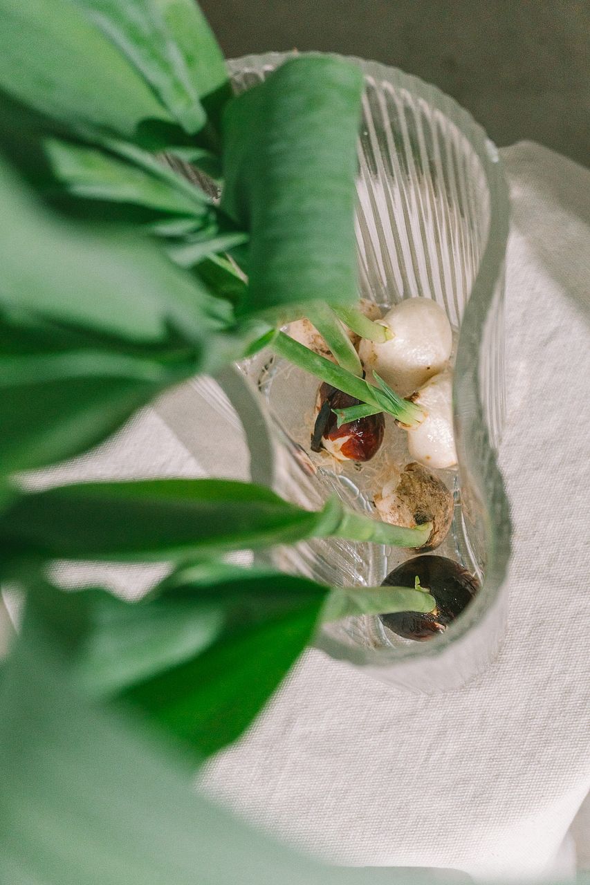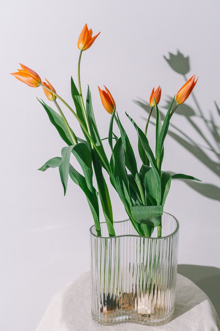 根から、花まで全てが見える透明な花瓶に飾るのがおすすめです!