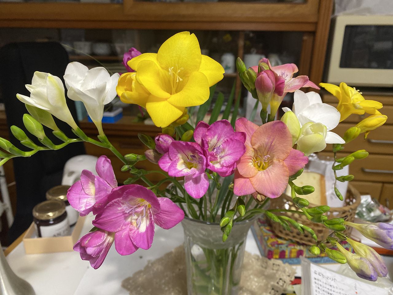 水漏れによる水下がりが少し気になったのですが、深水で水揚げしたらすぐに反応してくれて蕾の先端までハリが戻ってきました。