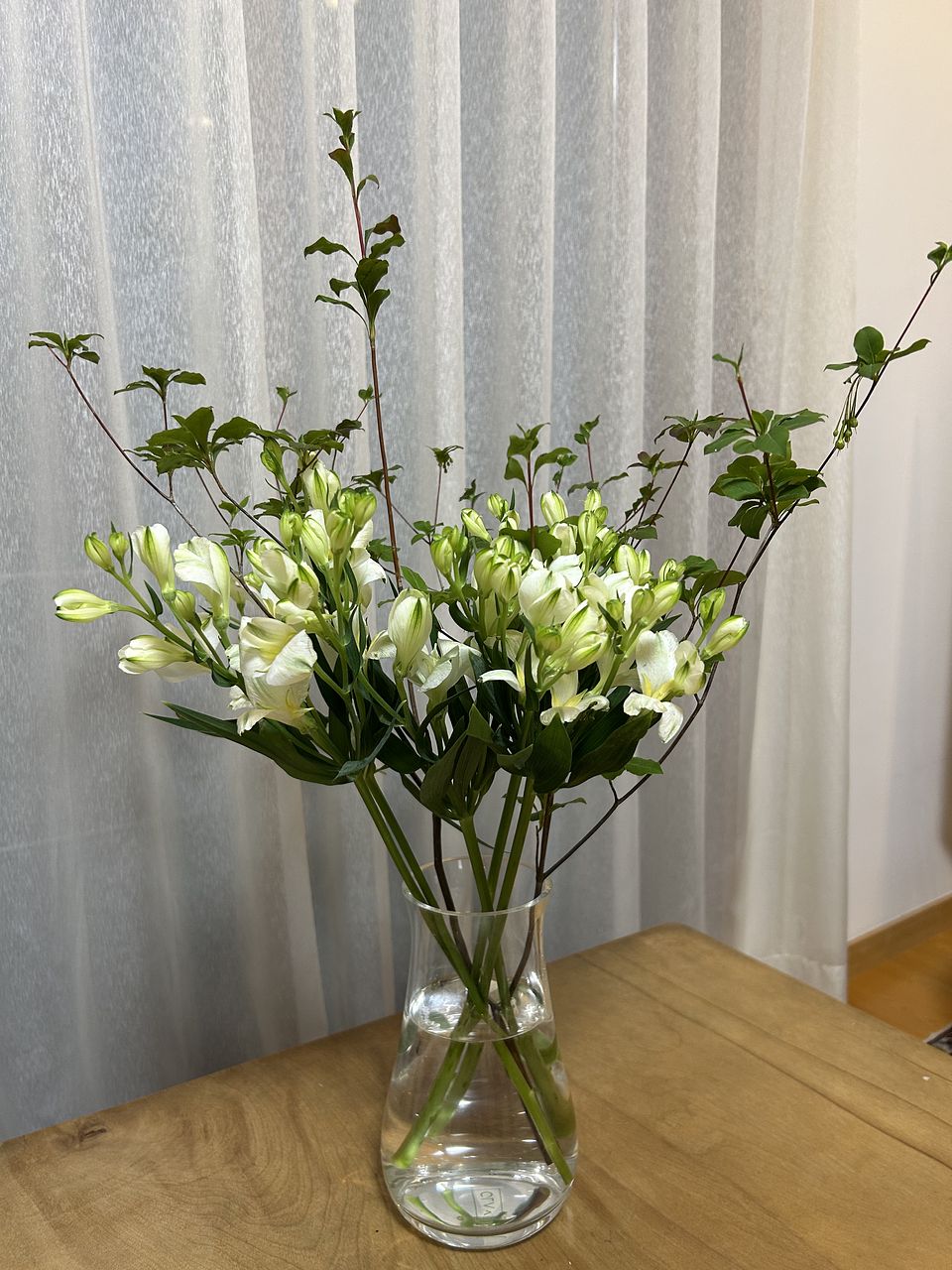 新鮮なお花が届きました。たいへん涼しげです。 ドウダンツツジと合わせました。爽やかです!