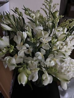 開いたお花の花びらが所々傷んで透けていました。どこかに強く当たってしまったのかな?と言った印象です。白い花なので仕方ないとは思いますが、5本届いて摘み取った花の数が10個以上あったので、少し多いかな、、、とも思いました(写真1枚目) でも綺麗なお花もだいぶ残っているので、マメにお手入れして長持ちさせたいと思います(写真2枚目※水あげ中です)