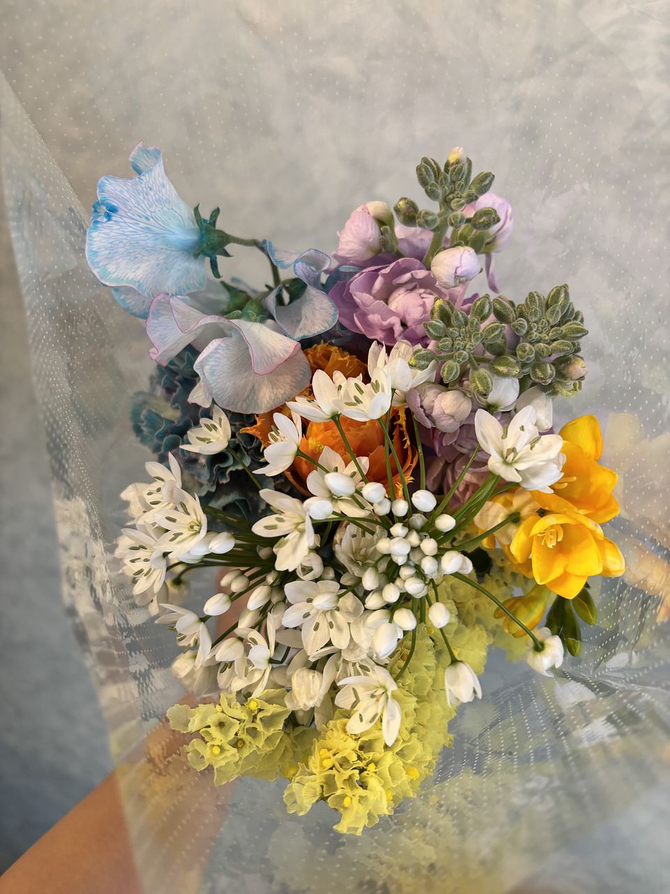 今いちばん旬のお花を、ブーケにしてお届けします。どんなお花が届くかは、箱を開けるまでのお楽しみ。