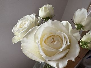 思ったより香りが少ない気がしたので、少し残念でした。ただ、バラはとても満足です🌹緑系の葉物などとともに生けたらとても白が映えてキレイです。