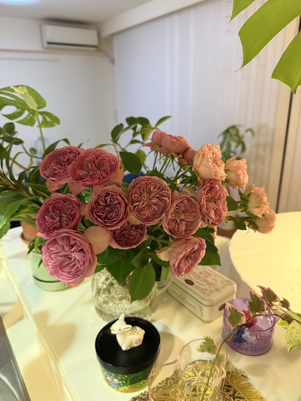 見たことのない品種のバラ、とても可愛いピンク色でお部屋が明るくなりました💕