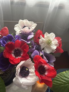 とてもボリュームがあってお部屋が華やかになりました✨ 季節外れの暖かさで、すっかり咲いてしまいましたが、少しでも長く楽しめますように… やっぱりアネモネ、可愛いです💕