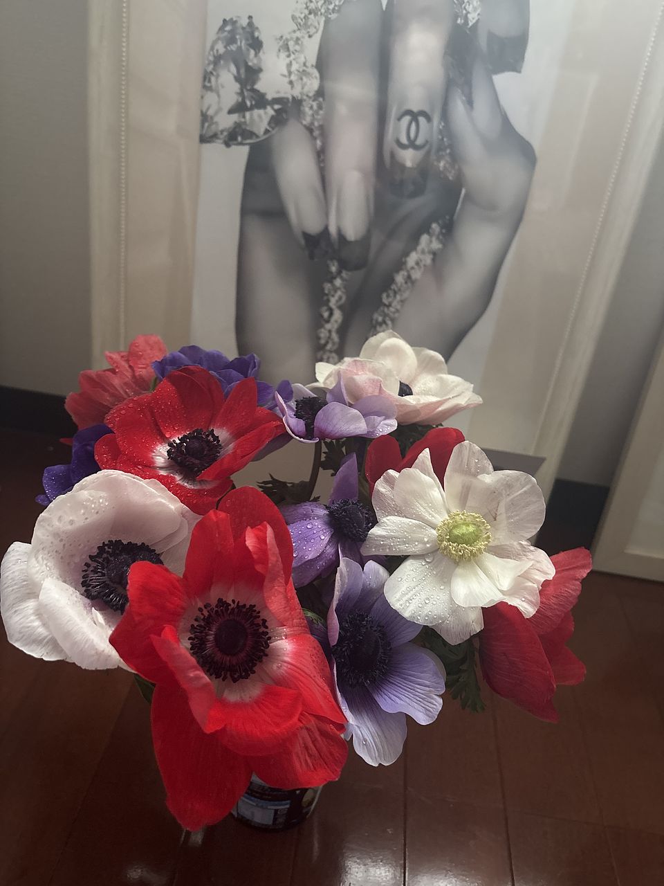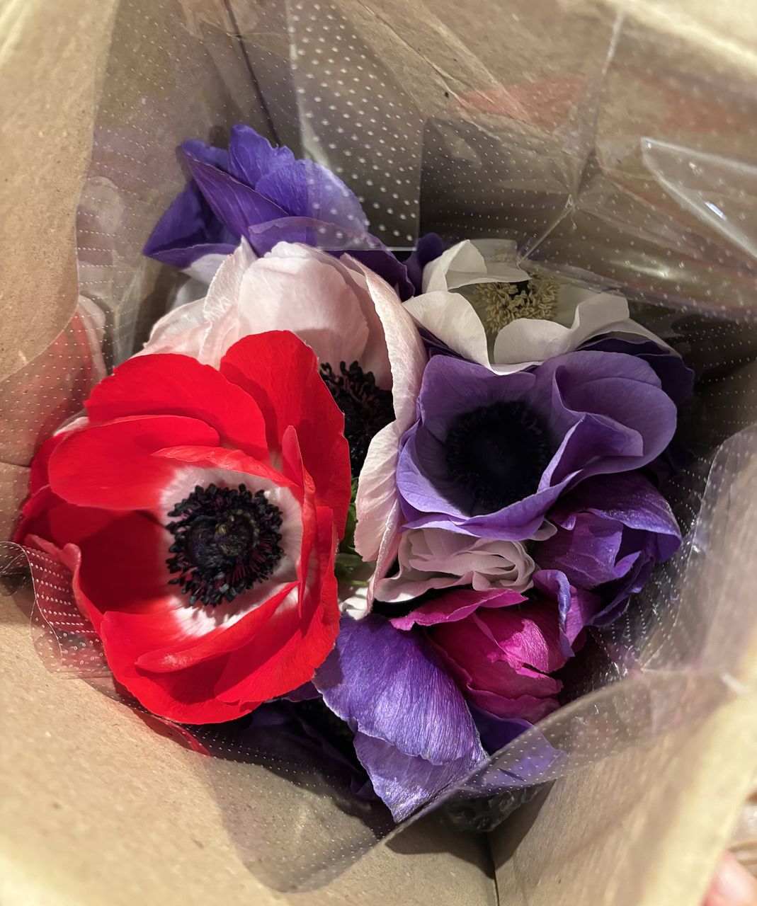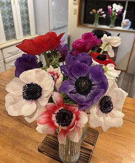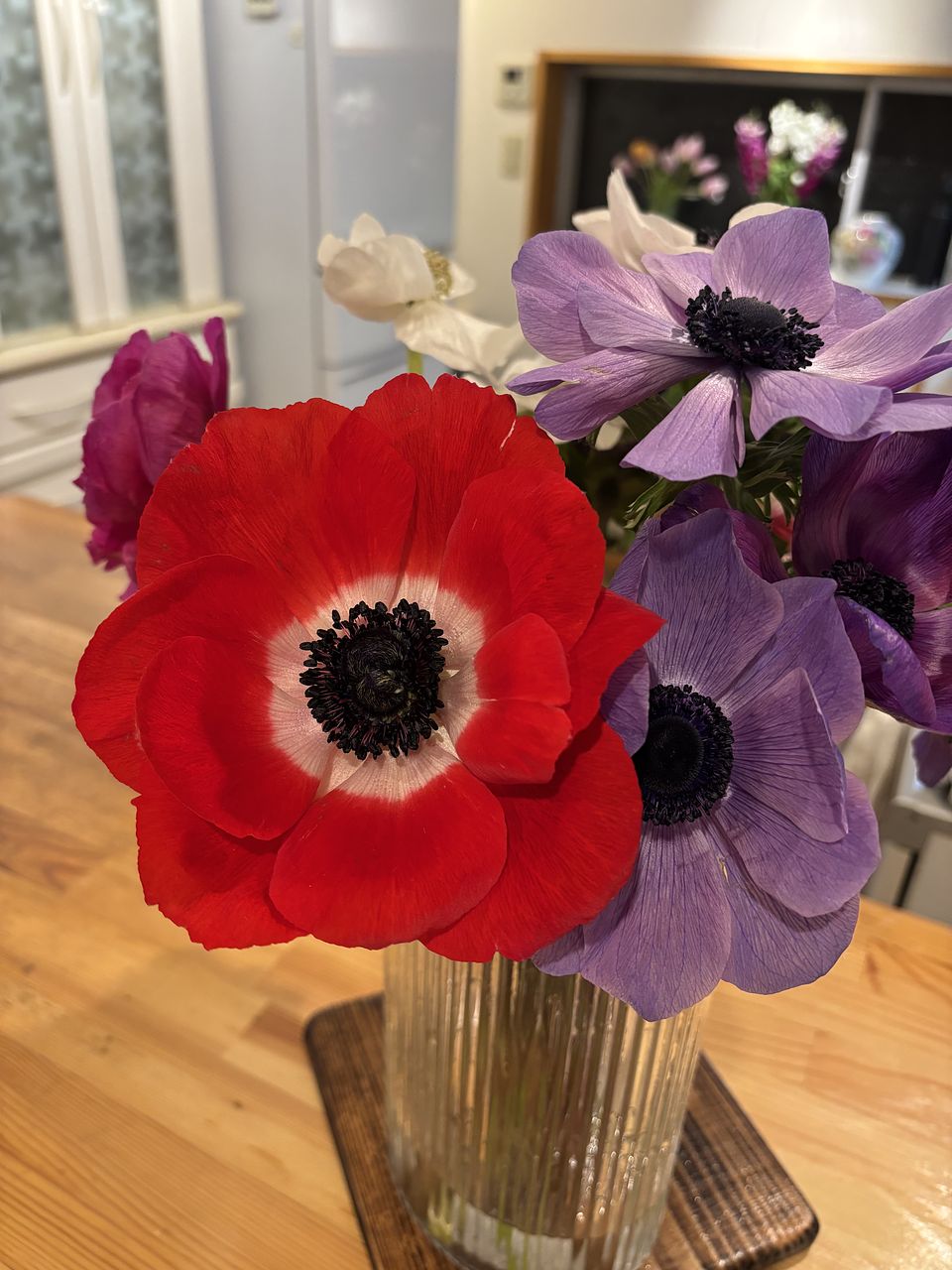 大好きなアネモネ花束、無造作に入れてもとっても可愛い🩷