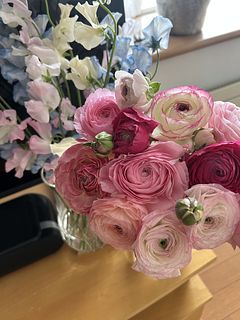 大好きな花♡薄いピンク、鮮やかなピンク含め、可愛いラナンキュラスがたくさん入っていました。茎の折れも一本もなく、水揚げすると、シャキッとし、ふわっと花が緩み、コロコロと可愛らしい姿を見せてくれています♡可憐さに癒されてます!また注文したいです!