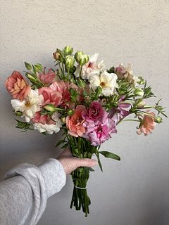 他にもこちらで購入したお花と組み合わせて、とても春らしく可愛らしい花束になりました。