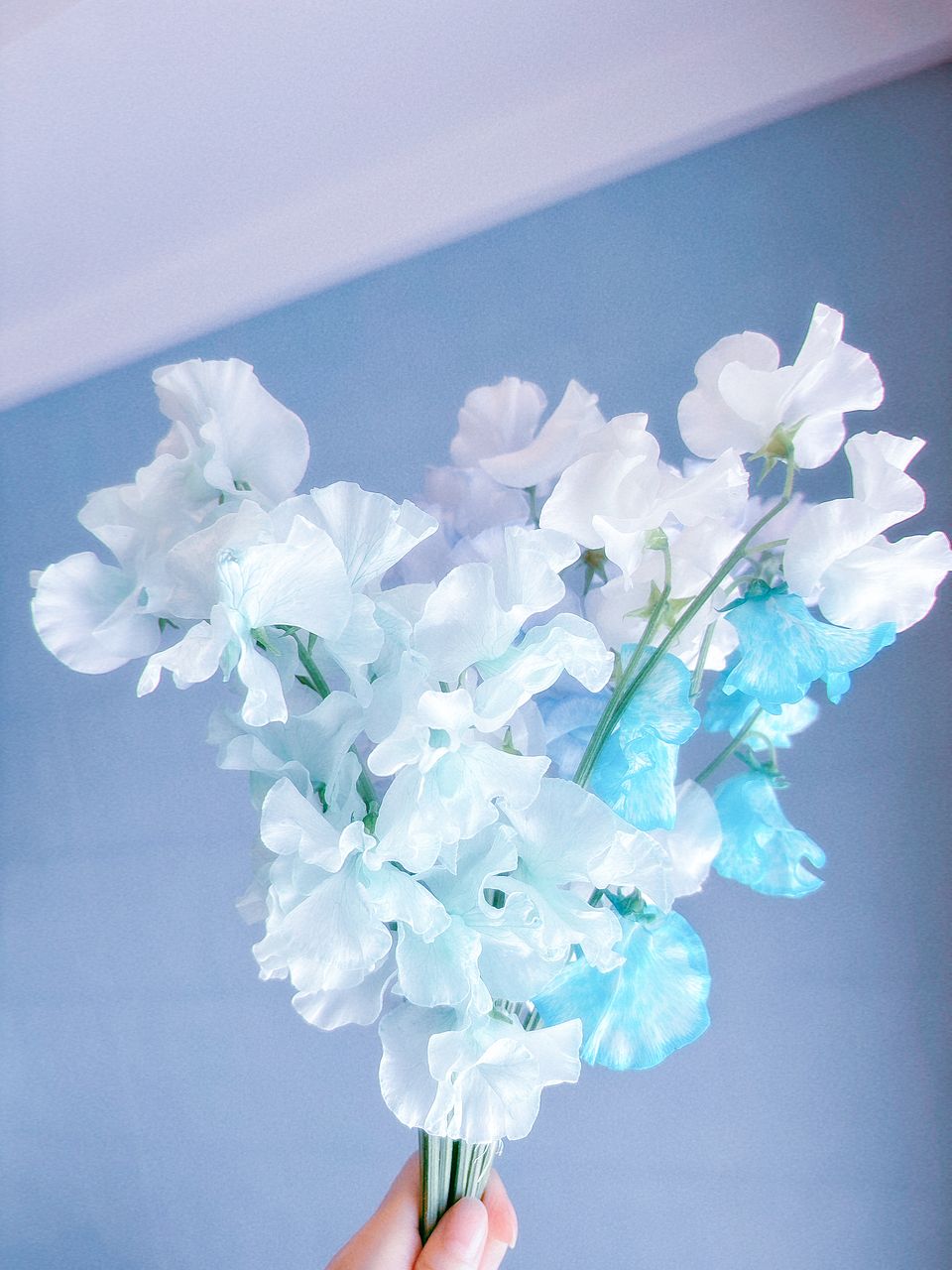 素敵なカラーリングです✨️ 今まで染めのお花は人工的であまり好みではありませんでしたが、Flowerさんが扱っている染花は自然な感じで好きです。 こちらのスイートピーも透けるような花びらと透明感のある色が儚げでとても素敵です🩵