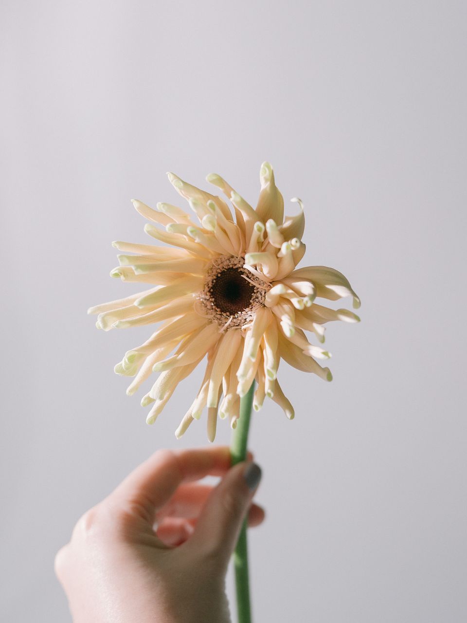 ガーベラの花言葉は「希望」「常に前進」。そっと背中押してくれるような、新しい季節にぴったりのブーケです。