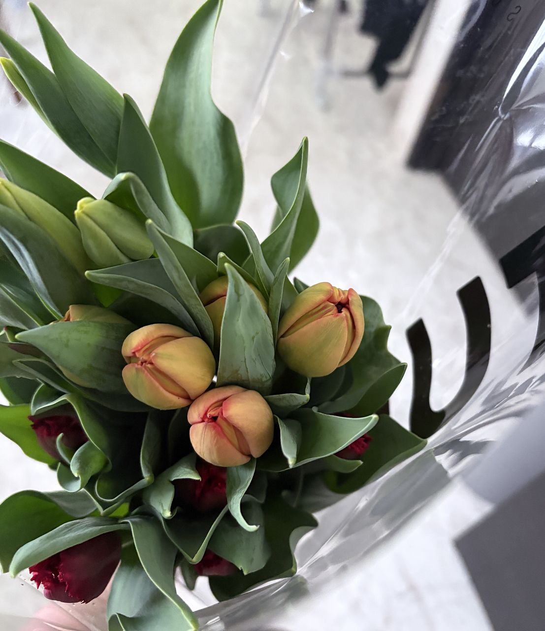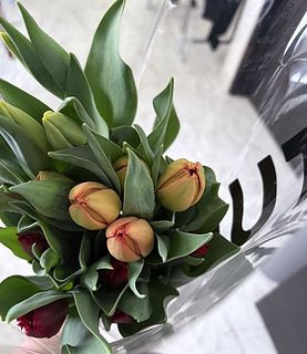 今回は3品種ミックスでお届けします。どんなチューリップが届くかは、箱を開けるまでのお楽しみ。長く楽しめるよう、硬いつぼみの状態でお届けしていることも。水揚げするとふっくら色づきますのでご安心ください。