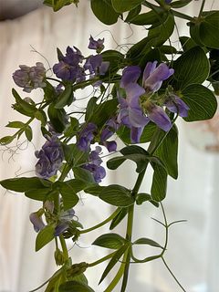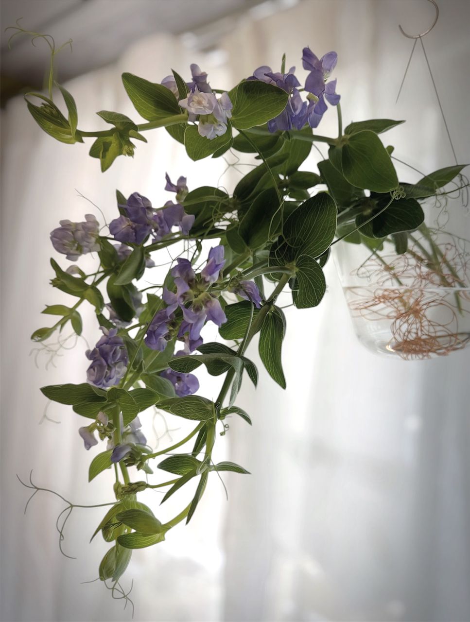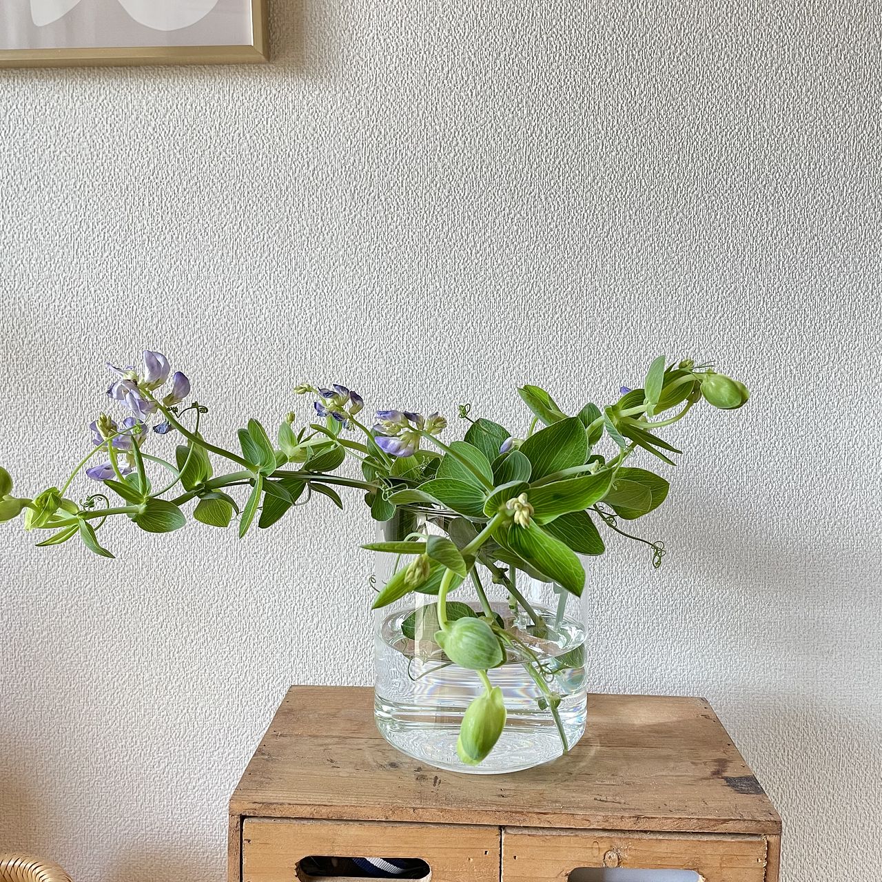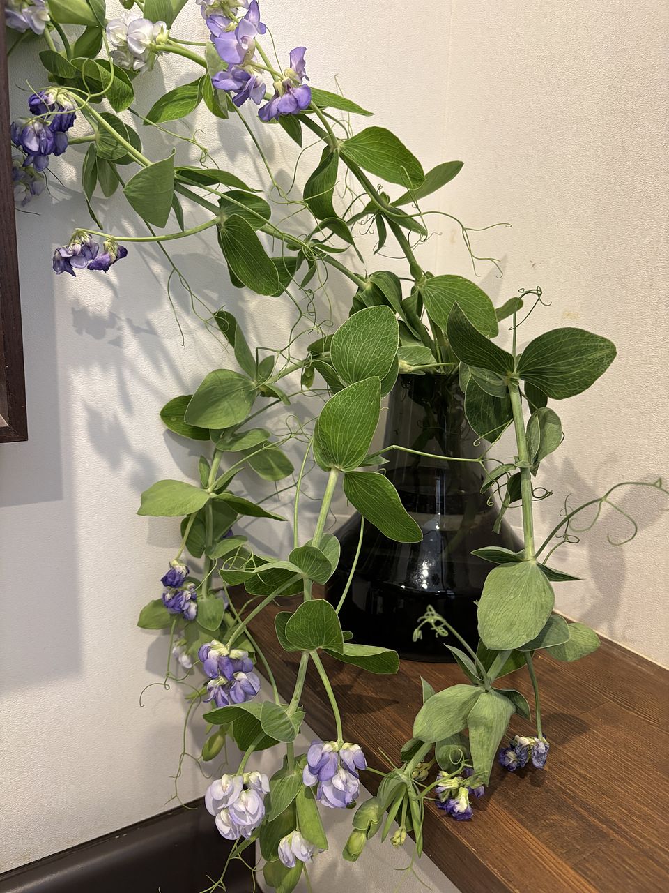 ジャックと豆の木を思い出しました(笑) いつも購入するスイートピーと違うタイプの蔓性の宿根スイートピー おしゃれでクルクルとした蔓がとっても可愛い🩷 オススメの花器DUCKでは小さすぎるのでは?と思いましたが全然大丈夫でした。 DUCKすごい!しかも可愛い💖