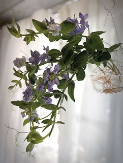 箱も大きくて、ボリュームがあり驚きました。フレッシュなグリーンとパープルがとても美しく、葉やツルの感じも生き生きとして楽しめそうです