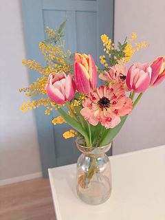 お花は長旅でお疲れぎみ。届いたら水揚げをしてたっぷりお水を与えてあげましょう。お花屋さんになった気分でお手入れしてみて😉