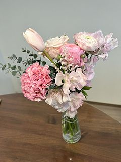 やわらかなピンクを中心に、今いちばん可愛い旬の花をぎゅっと束ねたおまかせブーケ🩰💗