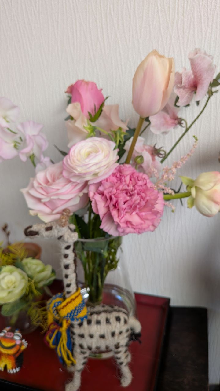 お誕生日のお花に🌷とにかく可愛くて癒されます🥰花瓶もこちらで以前購入したものです。