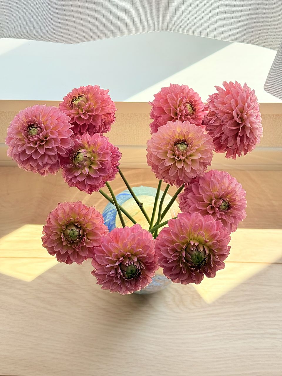 今回は小輪のダリア「ホットピンクオセロ」をたっぷり10本お届け。花径5cmほどの小輪のかわいらしいダリアです。春らしい柔らかいピンク色〜黄色のグラデーションが特徴の希少なダリア。ぜひお試しを🦩