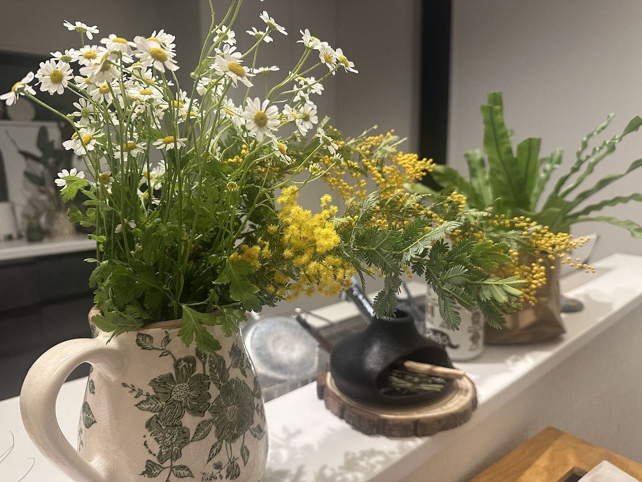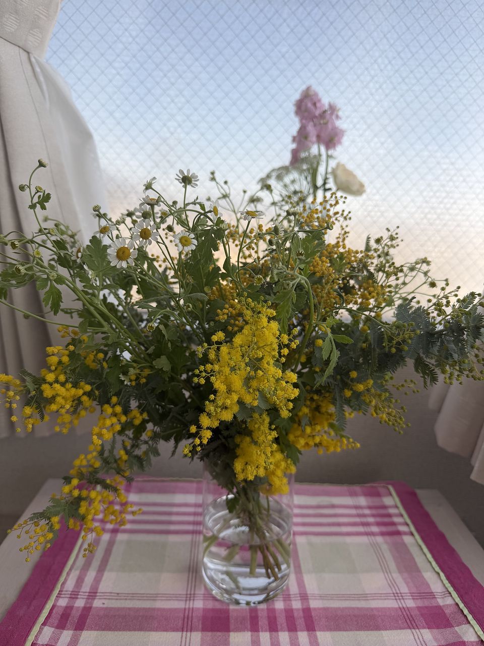 マトリカリアもミモザもボリュームがすごかったです。ミモザはしばらくいけた後、ドライにしました。マトリカリアはいけてから1ヶ月経ちますがまだまだ、まだまだ綺麗に咲いてくれています。どれくらいもつのか楽しみになってます😆