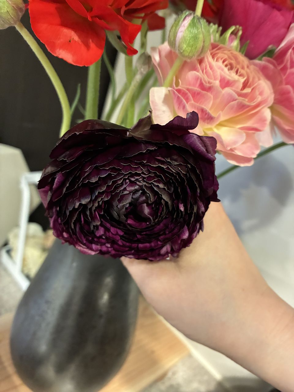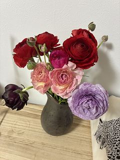 シックな色合いのラナンキュラスは珍しくとても素敵でした💓 毎日水替えして、蕾も咲いてくれました✨