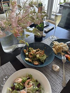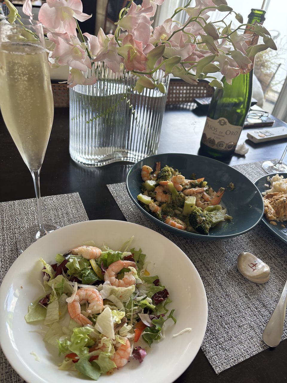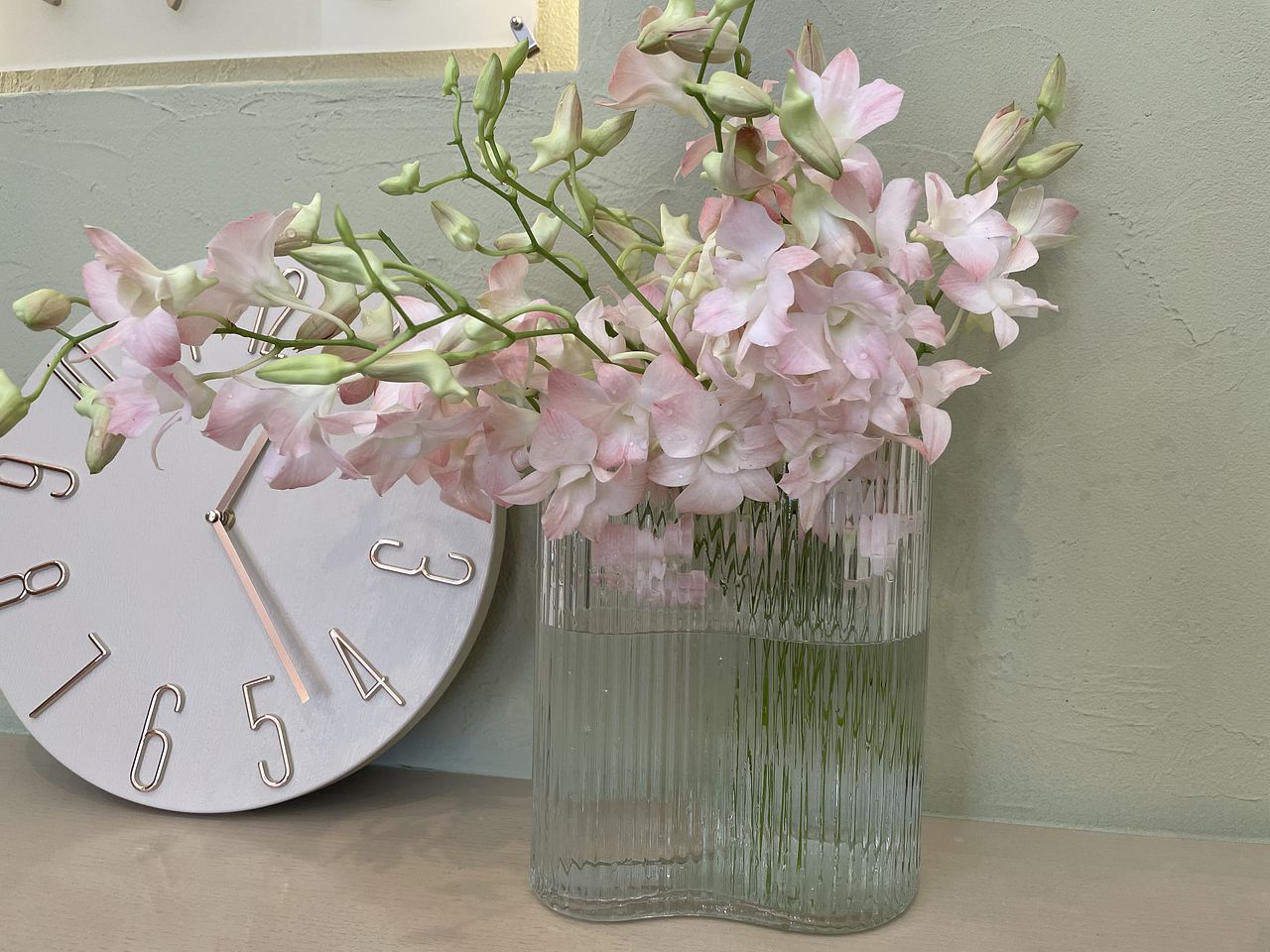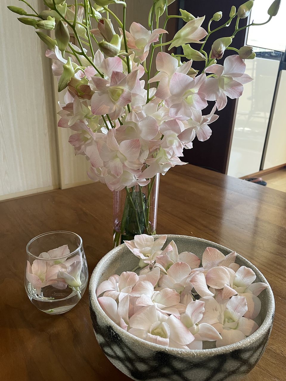 かわいい色味のデンファレで部屋が華やぎました ウェーブの花瓶も素敵ですね お花見気分で一杯やりました〜