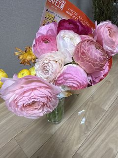ラナンキュラスは私の大好きなお花ですが、かわいいピンク色の花がたくさん入っていてうれしかったです。 急に暖かくなったせいか、ほとんどのお花がだいぶ咲いていたものの、比較的長持ちしていてうれしいです。 珍しいお花がたくさん販売されますし、お値段の割にとてもお買い得ですし、いつも新鮮なお花が届くのでありがたいです!