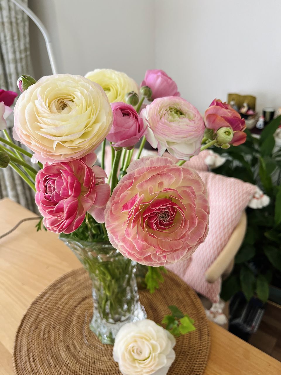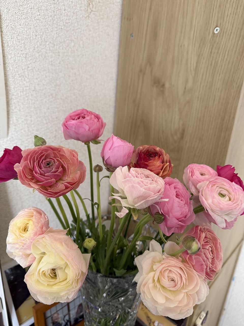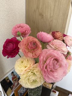 ボリューム満点で、家の中が一気に春になりました♪ ラナンキュラスは、一番好きなお花です💕💕