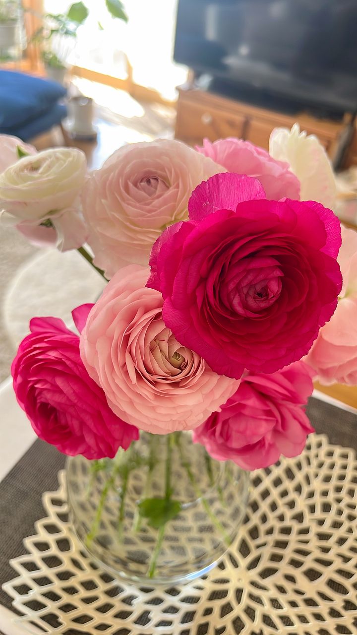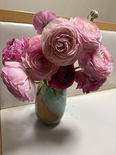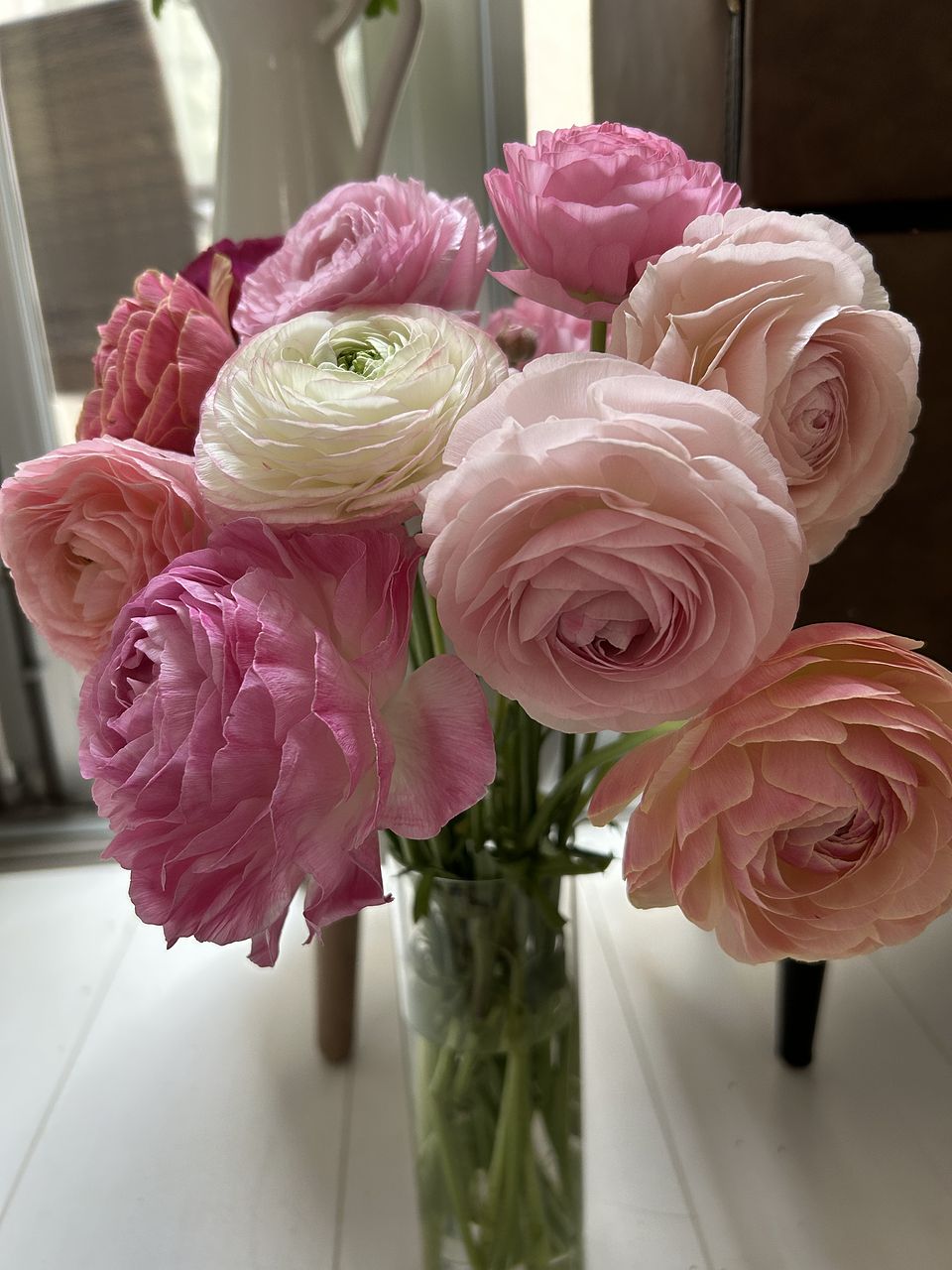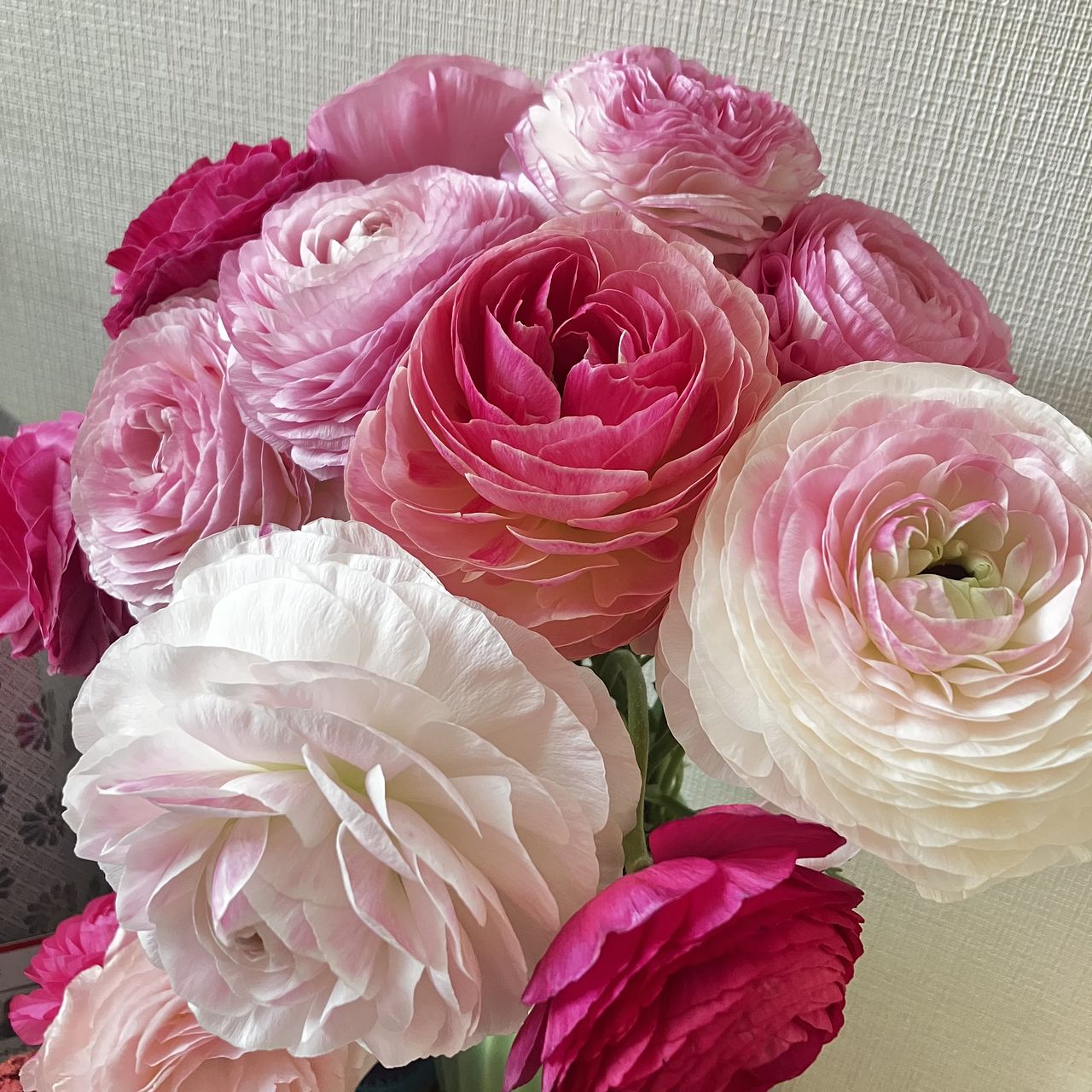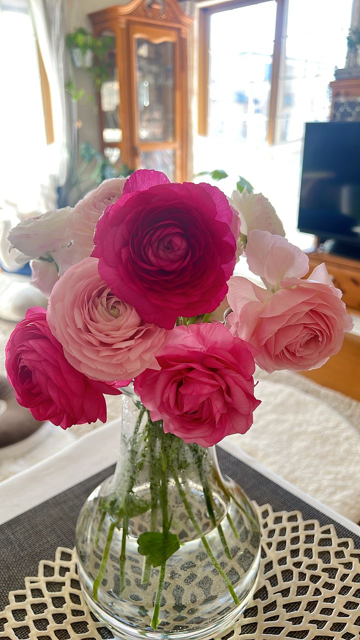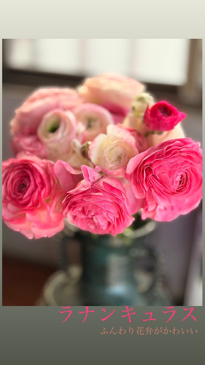 ピンクのラナンキュラスがたくさん。ボリュームがあり可愛いピンクに毎日癒されてます♪