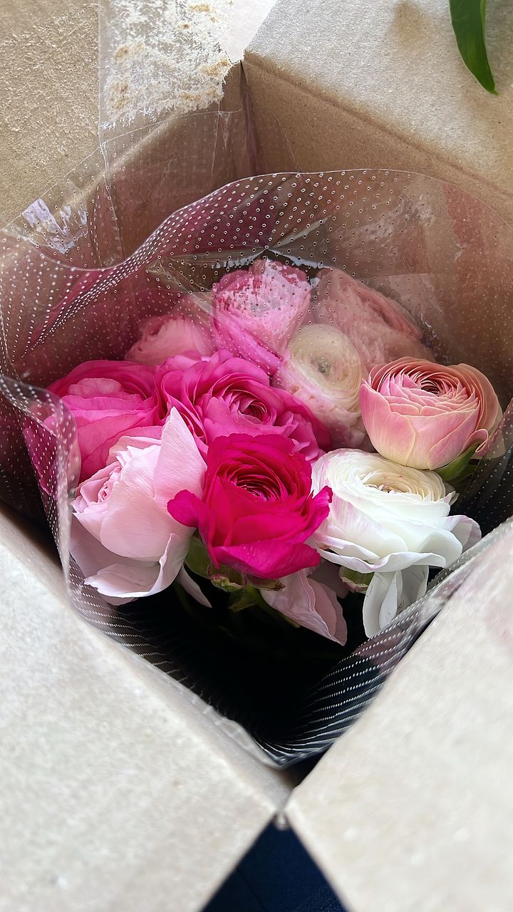 すごく可愛いラナンキュラスたちが来てくれました。 いま水揚げ中です。 工場の現場で日勤と夜勤を頑張っている息子がラナンキュラスが好きで、今晩持っていこうと思っています。ラナンキュラスのような彼女ができますように、、、🩷