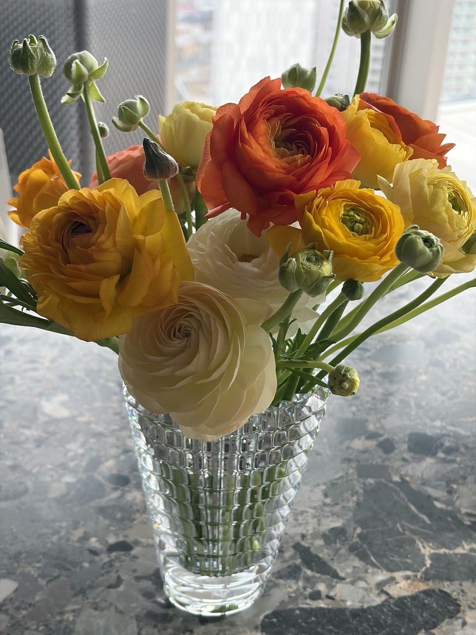 とっても元気の出るカラーで、お部屋も気分も明るくなりました✨ふわふわ可愛いラナンキュラス! いつも素敵なお花に感動です! ありがとうございます!