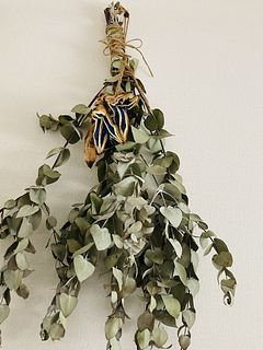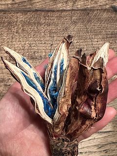 弾けたかたちがユニークでブルーの種がとても神秘的で素敵です。ドライのユーカリと合わせてスワッグにしてみました♡