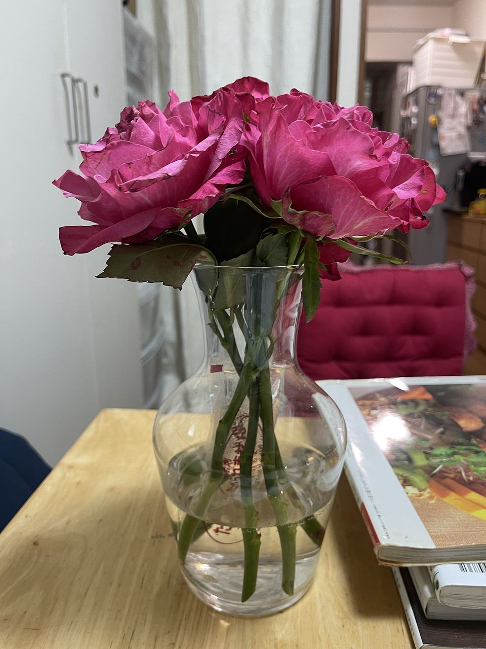 こんなに茎が太く大きいバラがあるんですね!写真よりピンク寄りなのがちょっとイメージと違いましたが、華やかさは大満足です。長持ちしてくれますように。