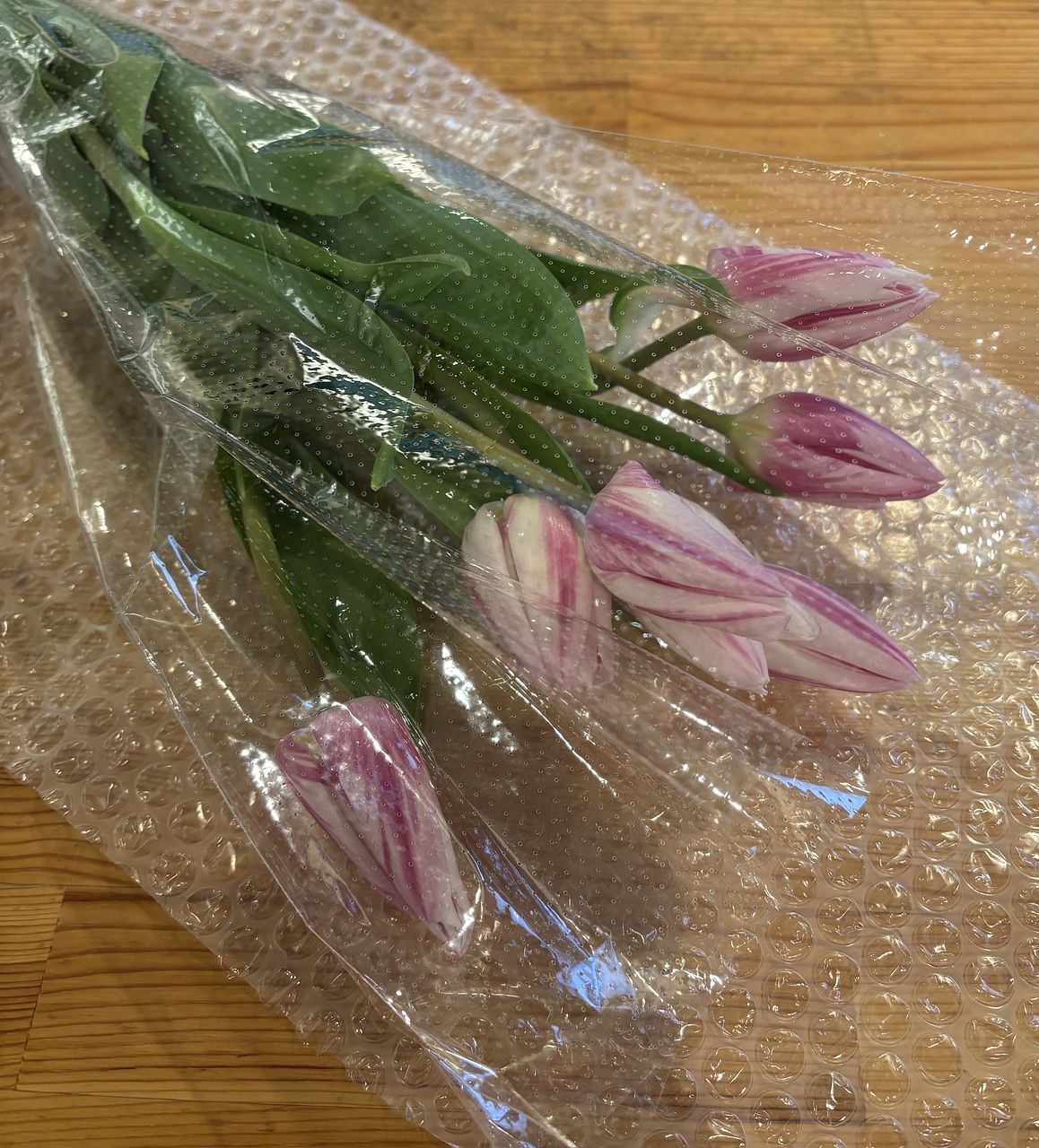 可愛いお花が届きました。ありがとうございます😊 マーブルキャンディみたいなチューリップちょっと控えめで愛おしいです。 みなさまのSNSをみているとお花愛を強く感じ花好きな私としてはとってもうれしいです。