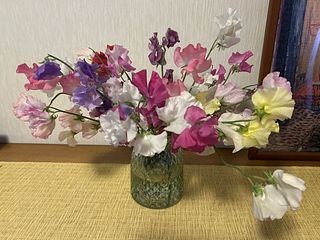 色とりどりのスイートピーが届きます。色味はランダムです。
