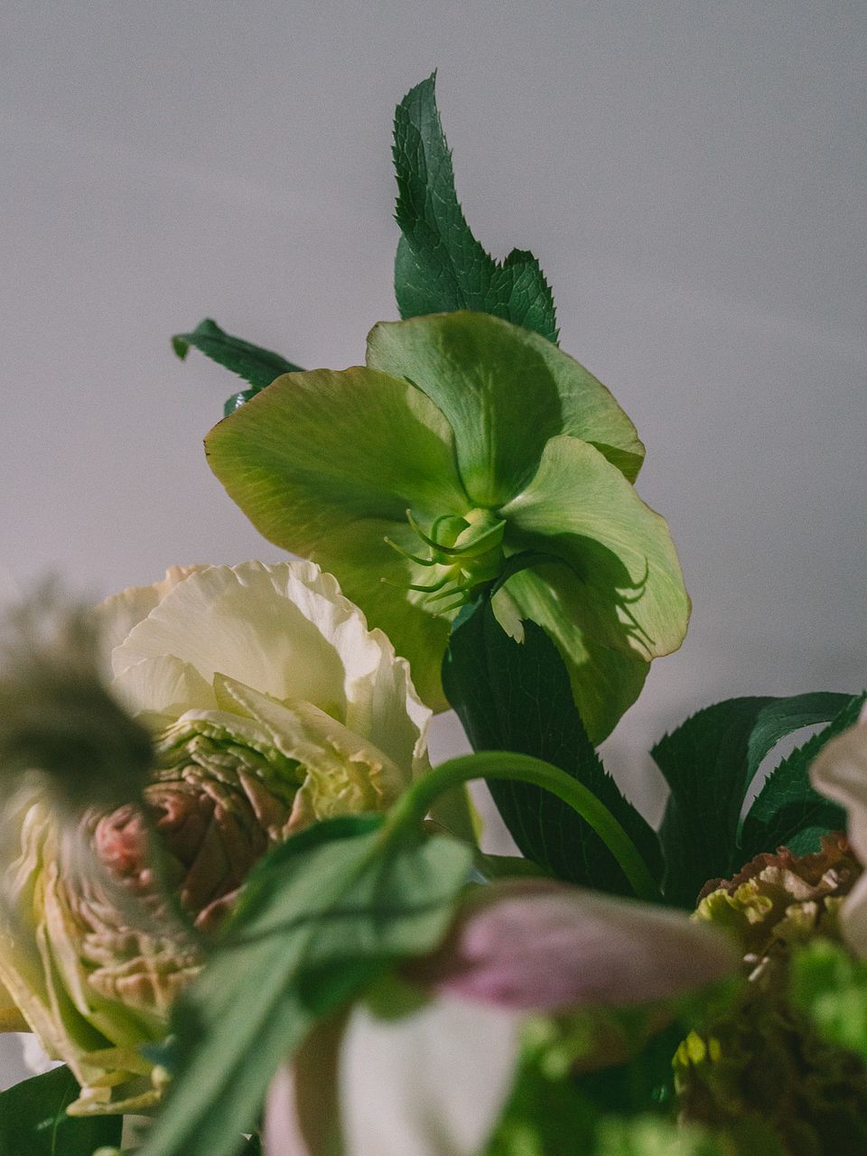 クリスマスローズとボタニカルカラーの春のお花達を束ねました😍