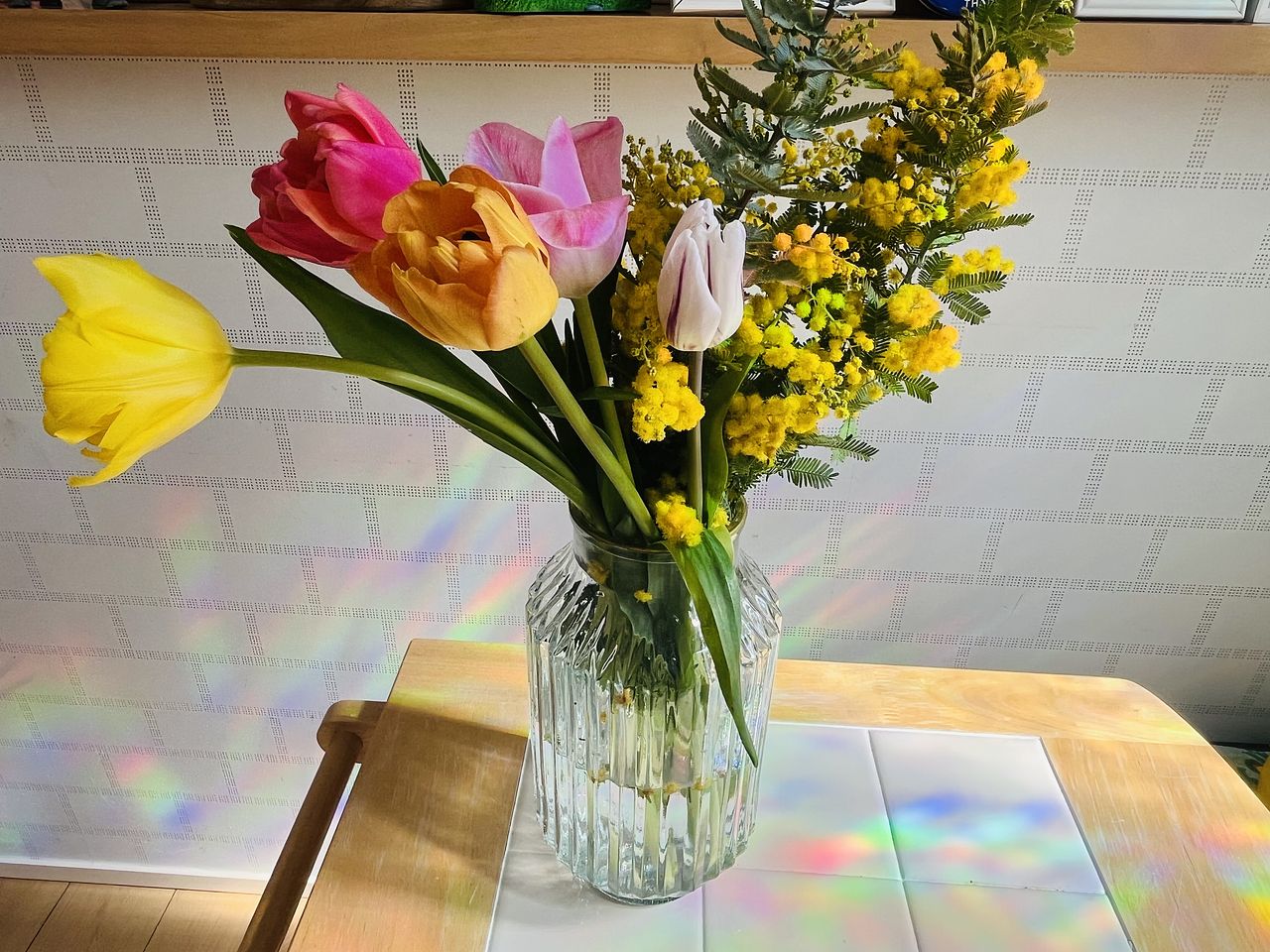 チューリップとミモザが主役の贅沢な春のおまかせブーケがお買い得になりました!いつもより250円お得です🉐