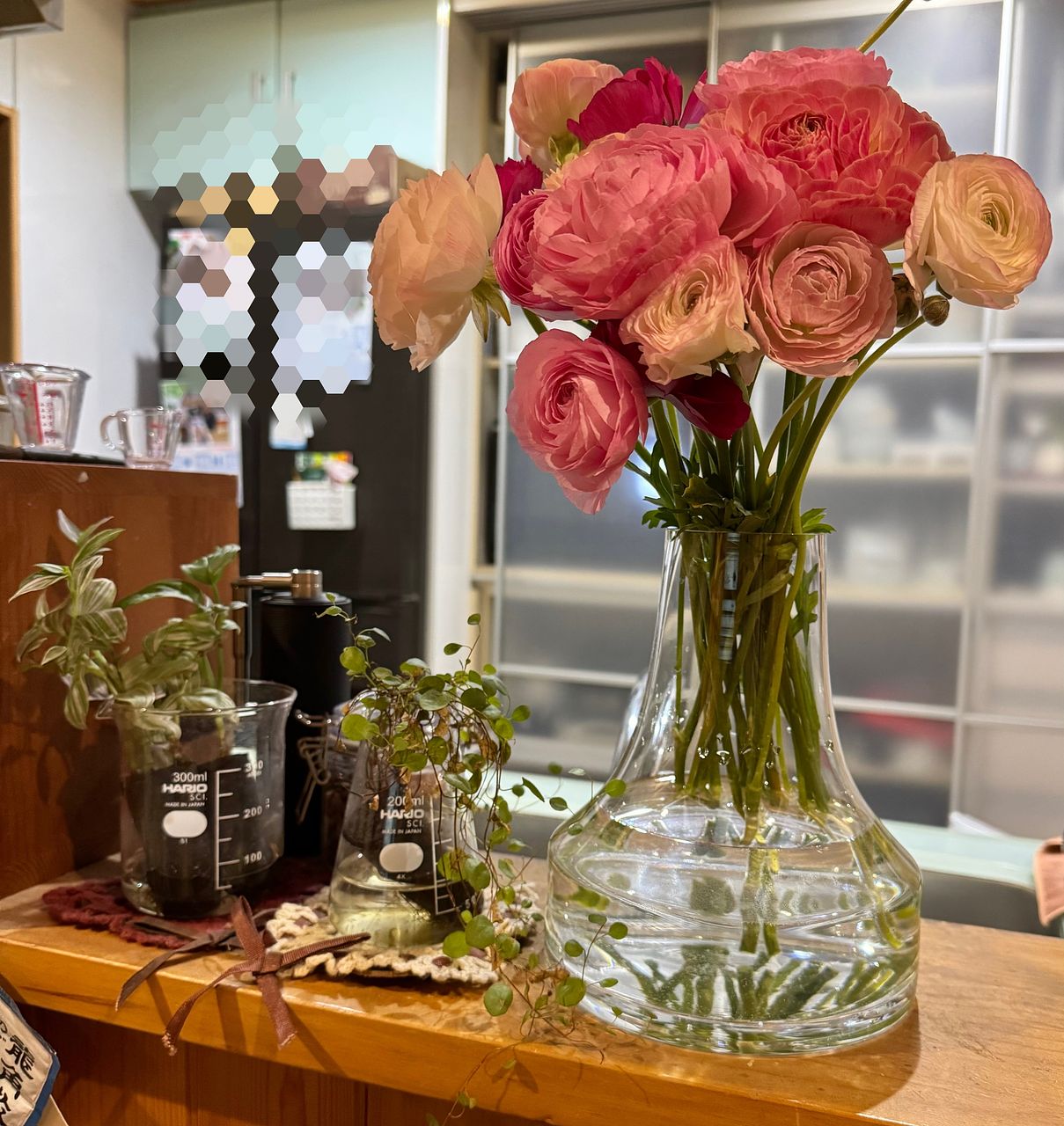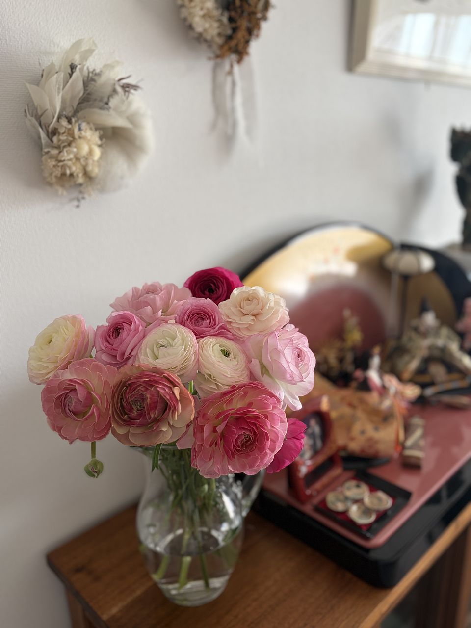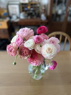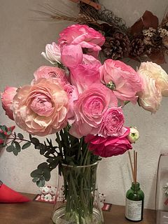 ボリューム満点で、家の中が一気に春になりました♪ ラナンキュラスは、一番好きなお花です💕💕