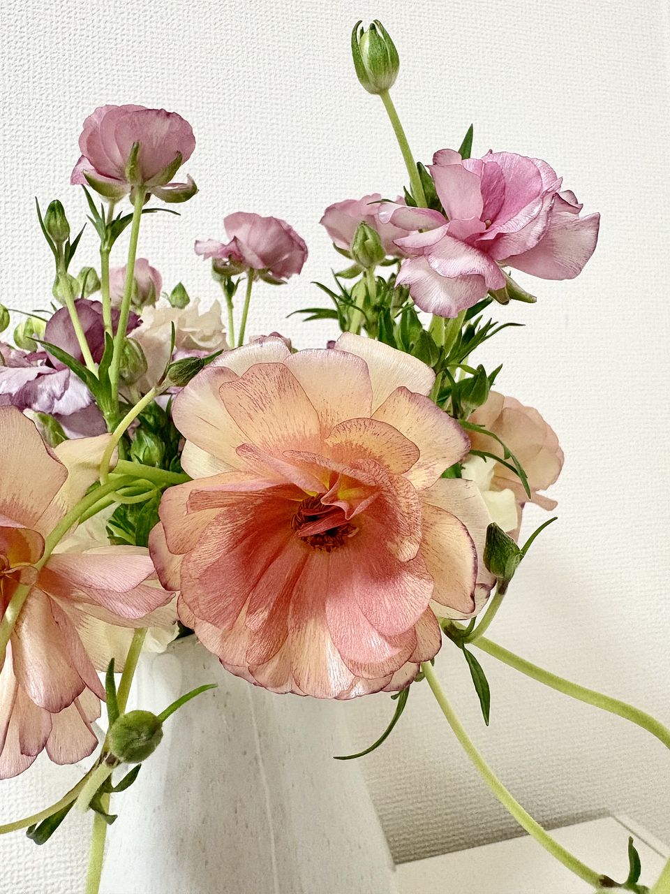 ツヤのあるシルクのような花びらが魅力のラナンキュラスのラックスシリーズをミックスでお届け!希少なのでお花屋さんで買うとちょっと高級品。