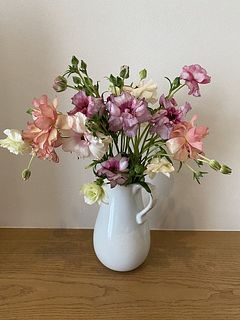 お部屋に入った途端、そのボリューム、可憐さに圧倒されます🥰 その後はとても柔らかな気持ちにさせてくれる、可愛さです。 想像以上にボリュームがあるので、豪華です。 茎が華奢でしなやかなので、生ける花瓶を選んでしまいますが、贅沢な悩みですね。 そり返る花びらも可憐ですが、割と早く萎えてしまうのですが、次から次へと蕾が咲いてくれます。 お花屋さんでは、高価な品種なのでお手頃に購入できて嬉しいです。