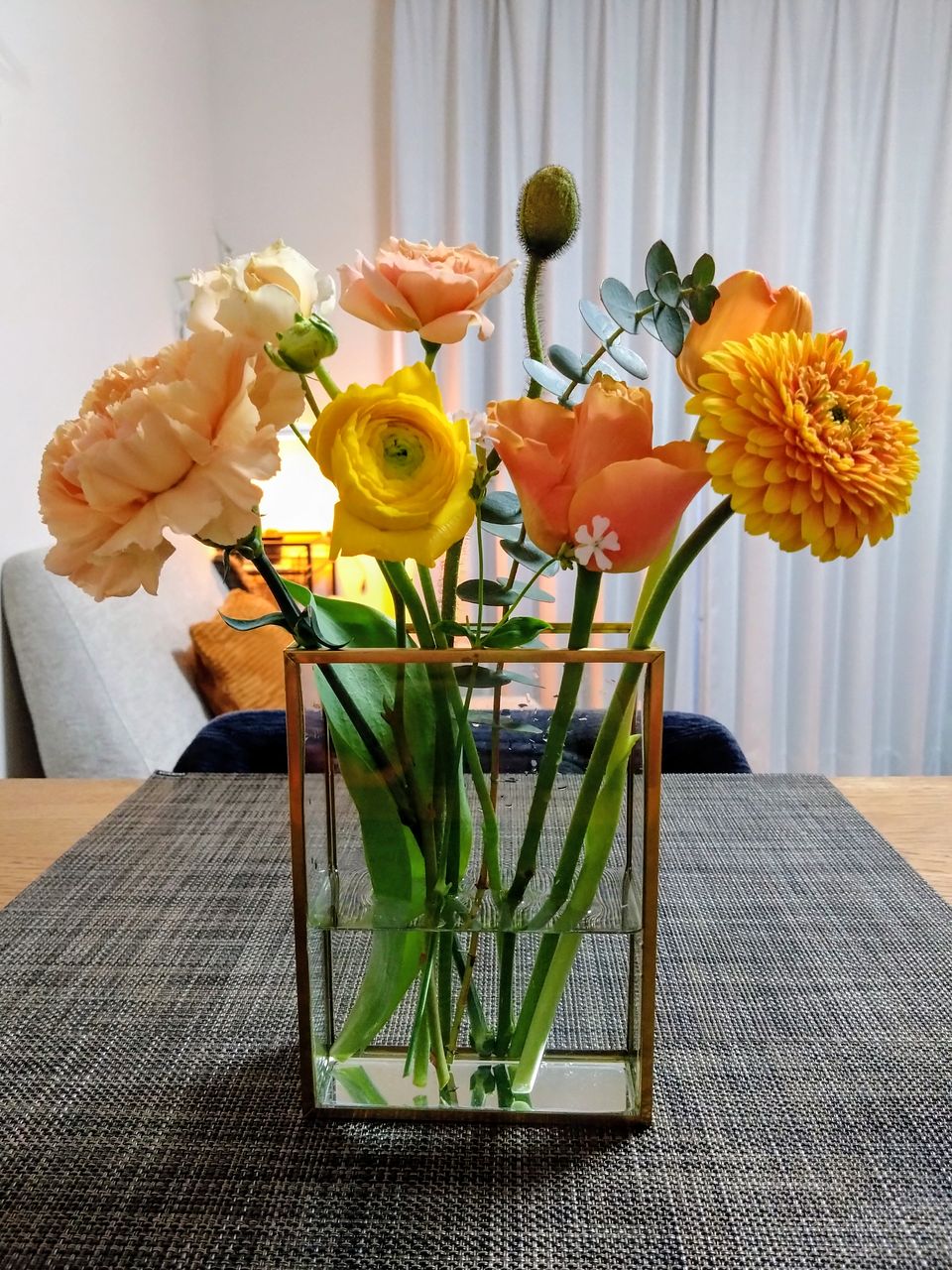 オレンジやイエロー、ピンクのお花を見るだけで気持ちがふっと和らぐような組み合わせにしてみました🍊