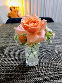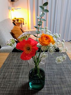 届いた時はバラがつぼみの状態だったのですが水揚げして花瓶に飾って一晩経ったら丁度いい状態に! 元々飾ってた花とあわせてめちゃくちゃかわいくなりました。 一本だけ赤いポピーが混ざってたのですがそれは別の花瓶に飾りました。