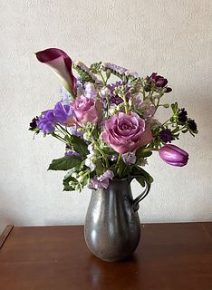 母の喜寿のお祝いにプレゼントしました。2月の誕生石アメジストと喜寿のパープルのカラーがピッタリでした。花の種類もたくさんでボリュームも想像以上でした。とても素敵でした。