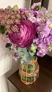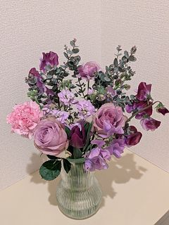 自分の誕生日用に購入しました。沢山の種類のお花で花束になっていて、香りも良くてとても満足しています。生活が明るく潤う感じがしています。